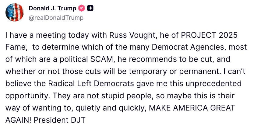 One of the key architects of Project 2025 is Russell Vought. He’s mostly flying under the radar, but is in control of the Office of Management and Budget (OMB). He released a memo last week (excerpt):
